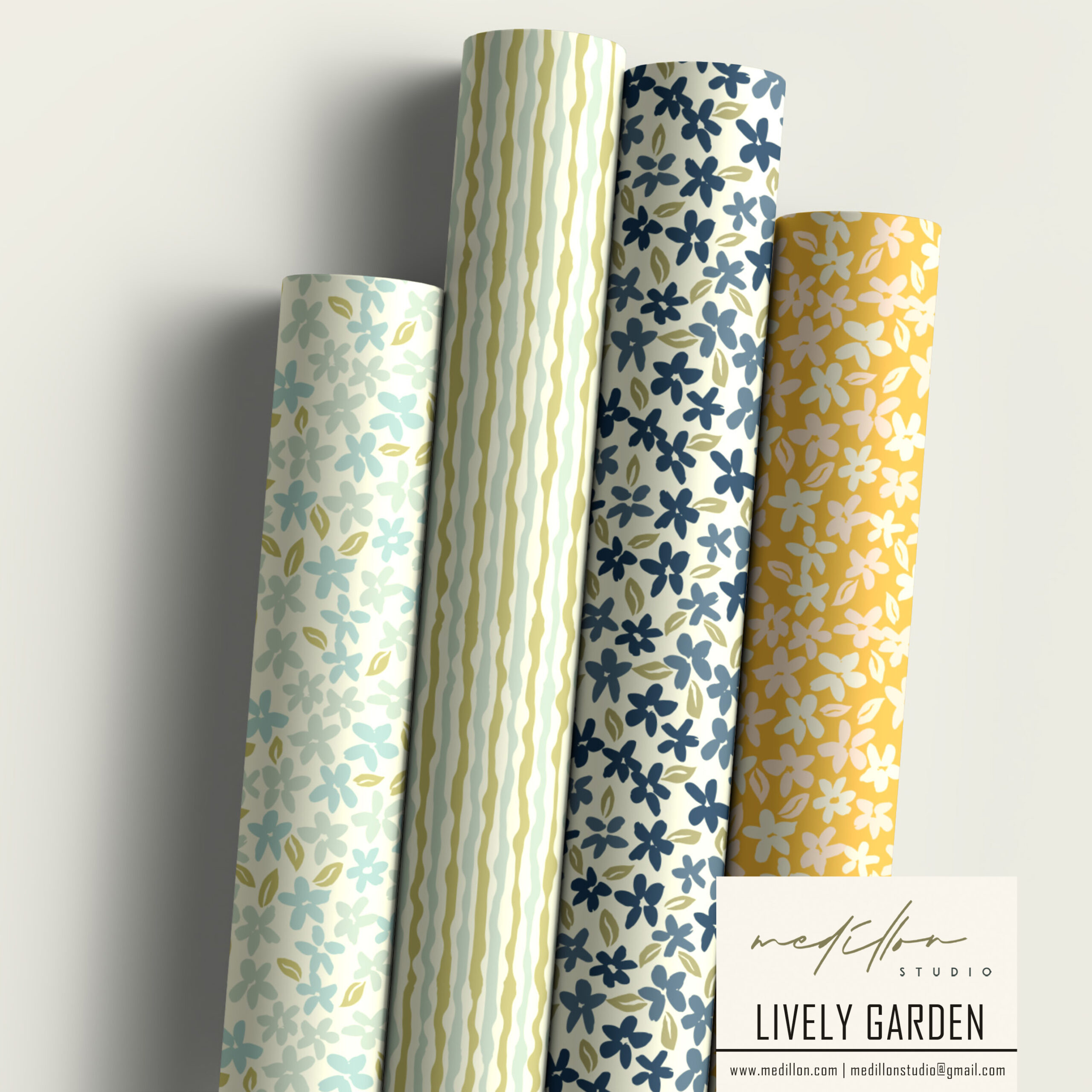 The Lively Garden Collection brings the energy and vibrancy of a blossoming garden to life with bold floral patterns in a refreshing array of colors. Featuring flowers in soft pastels like blush and aqua, alongside muted earthy tones of blue, green, rust, and yellow, each design captures the dynamic beauty of nature in full bloom. This collection invites a sense of warmth and joy, blending fresh tones with rich, grounded hues to create a harmonious yet playful aesthetic.