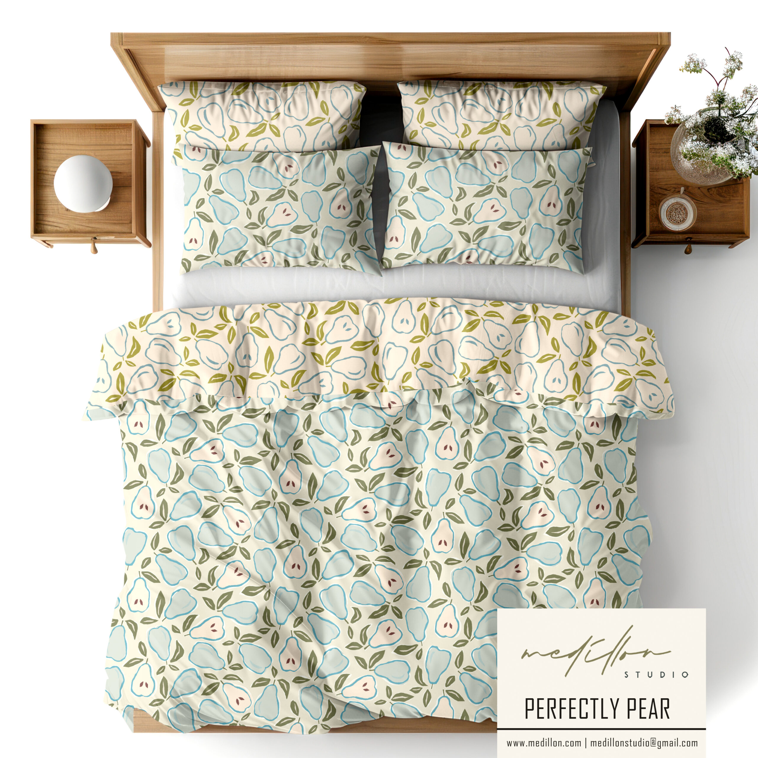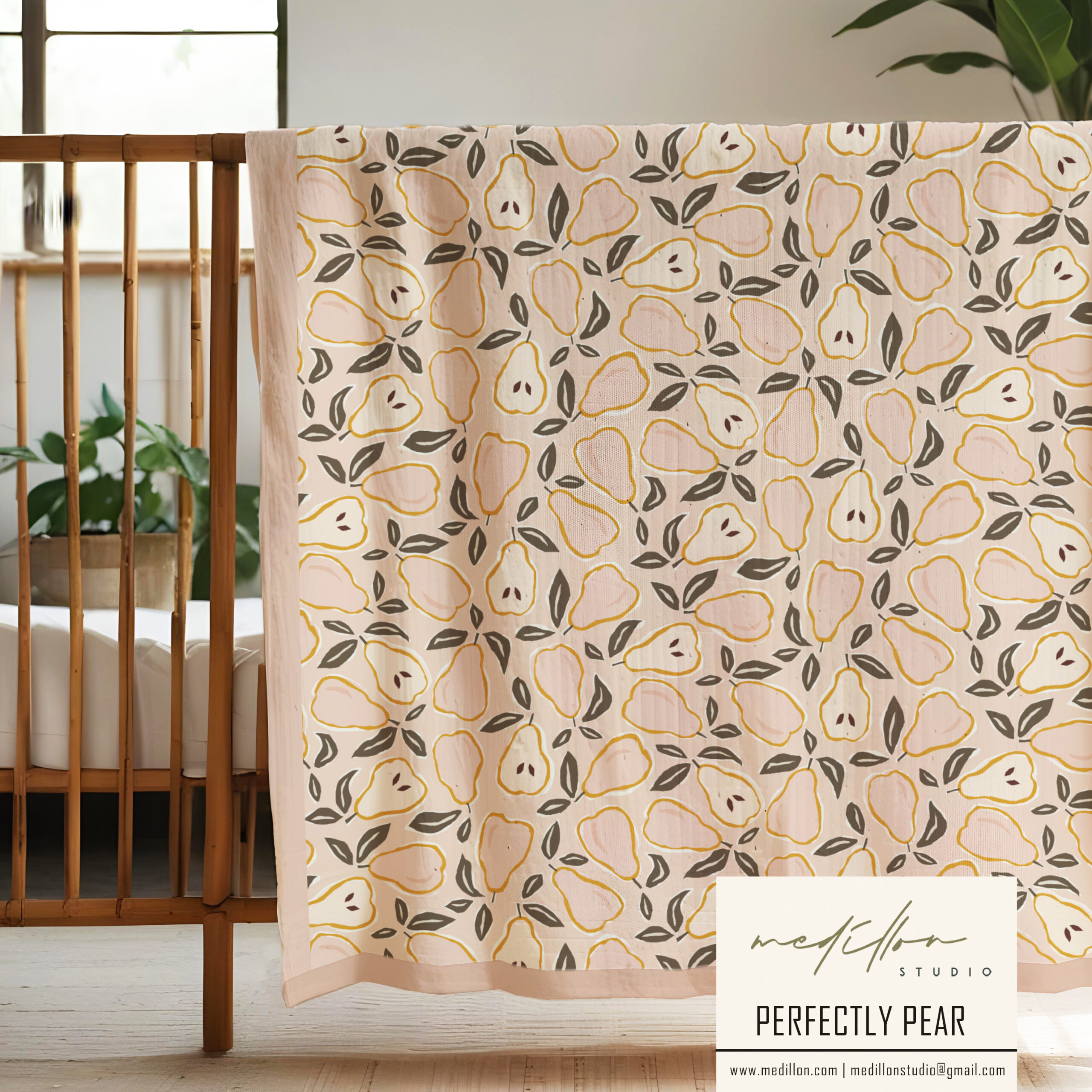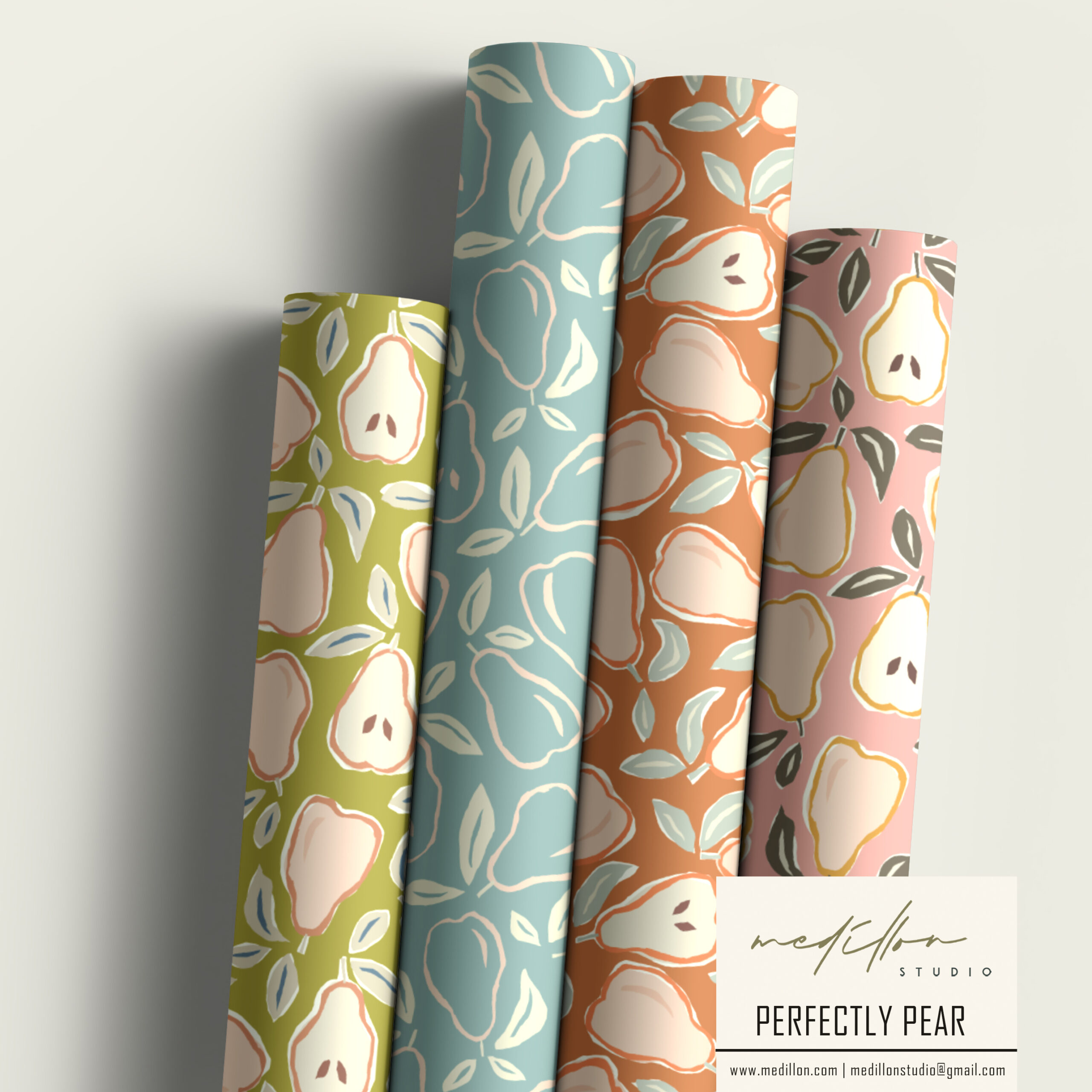 Designed with versatility in mind, this pear pattern collection works beautifully across home décor, children’s products, fashion textiles, and stationery. Whether applied to wallpaper, soft furnishings, or apparel, these designs infuse products with a balance of elegance & simplicity.