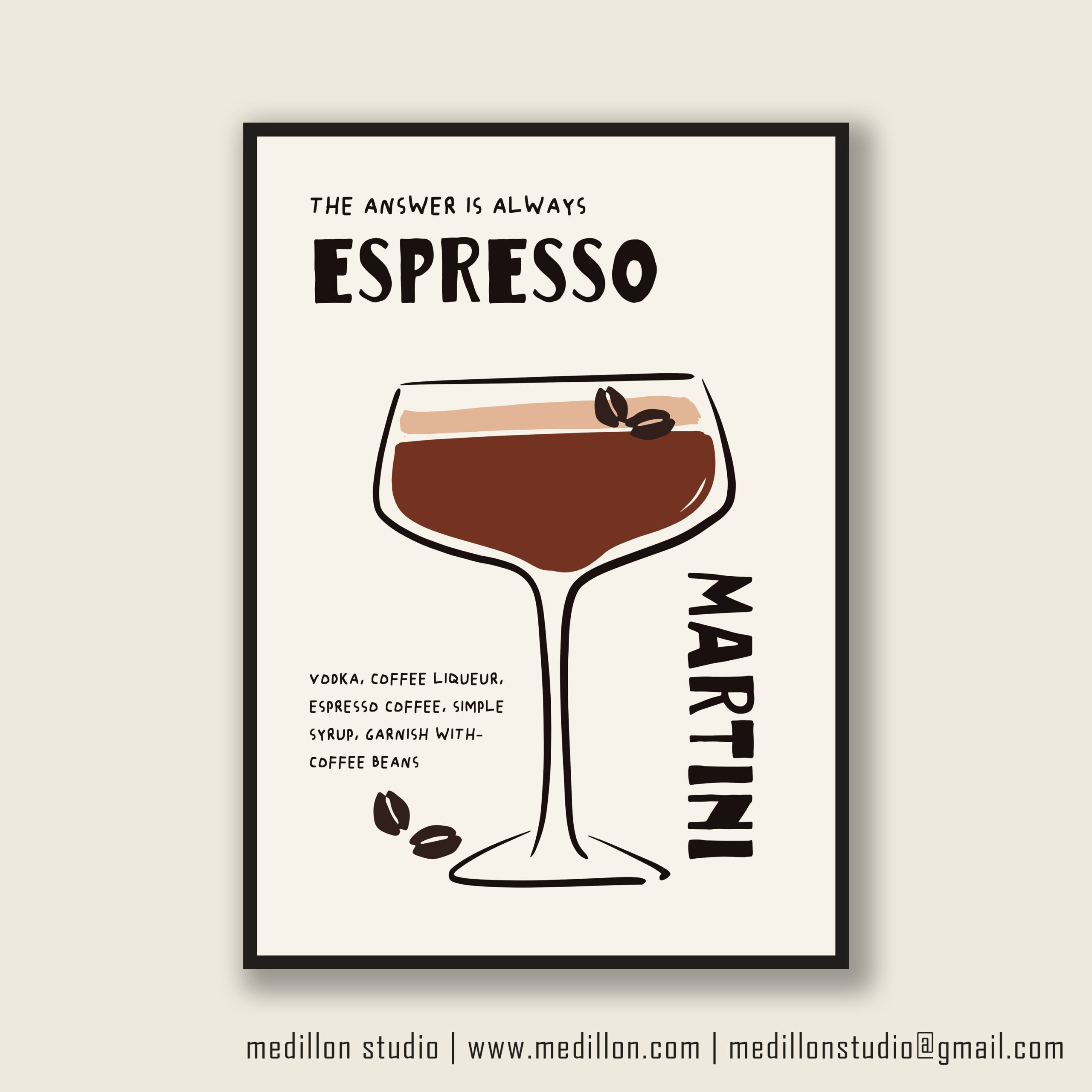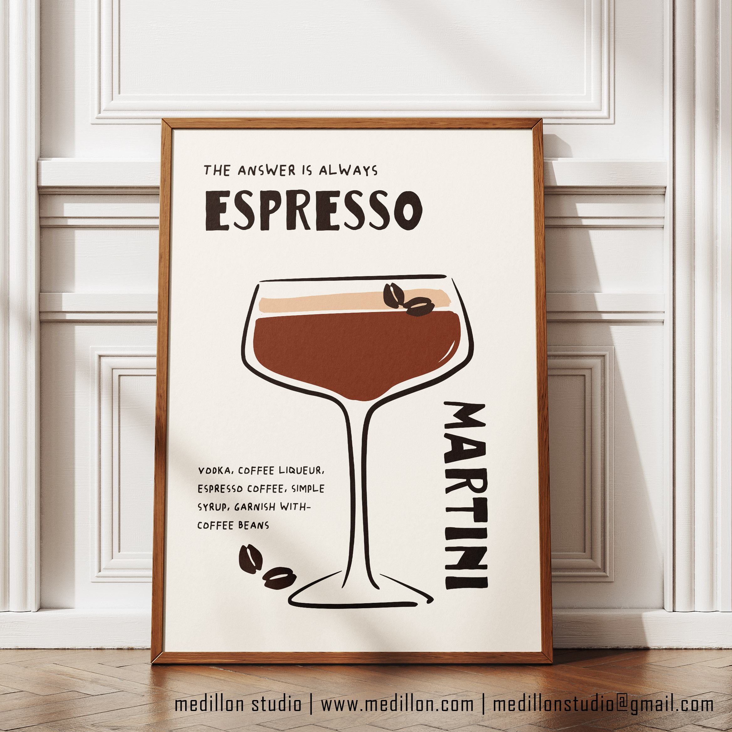 Add a splash of humor and sophistication to your walls with The Answer Is Always Espresso Martini print. Perfect for cocktail lovers, coffee enthusiasts, and anyone who believes the best ideas start with a martini. This bold, modern-retro artwork makes a great addition to your kitchen, dining room, or home bar.