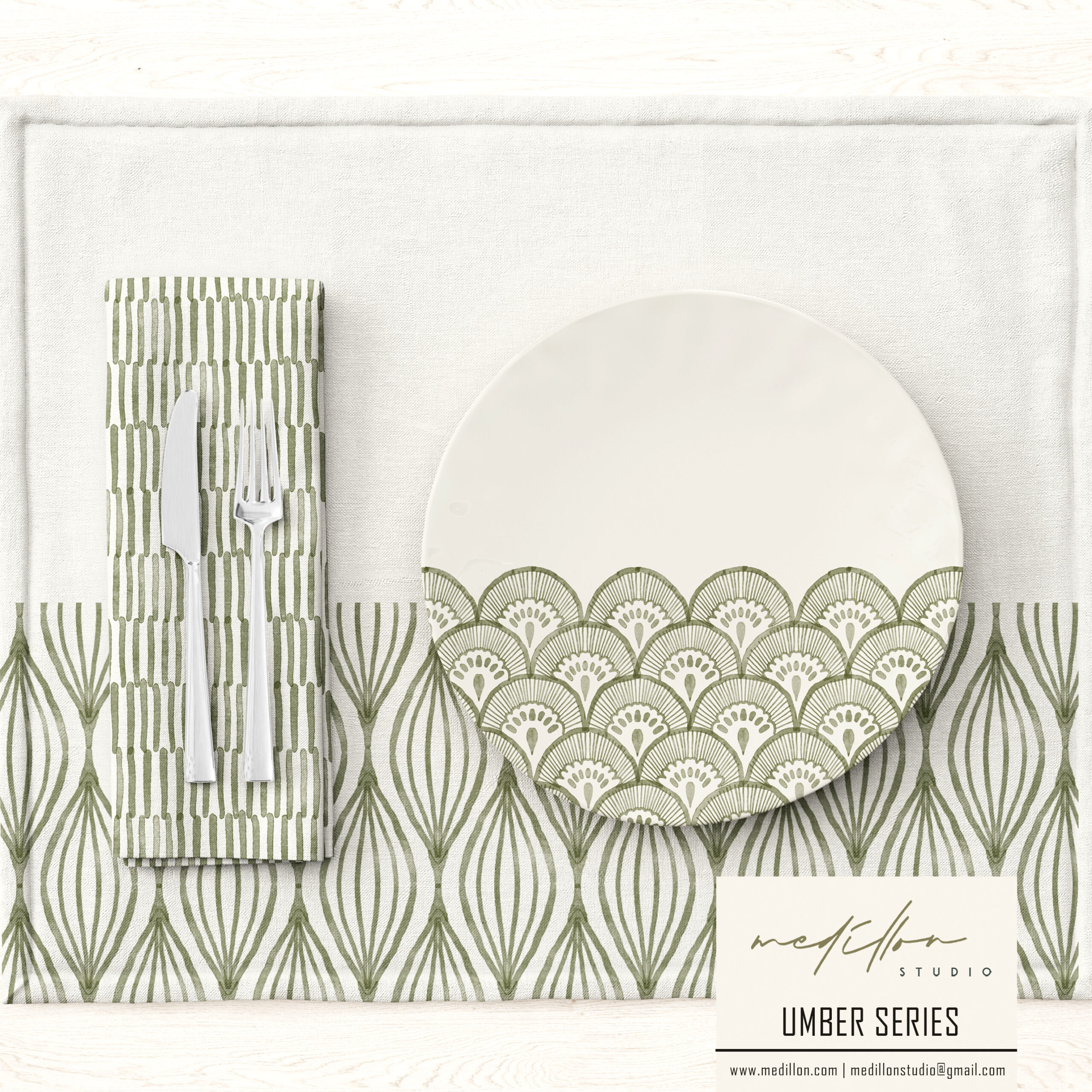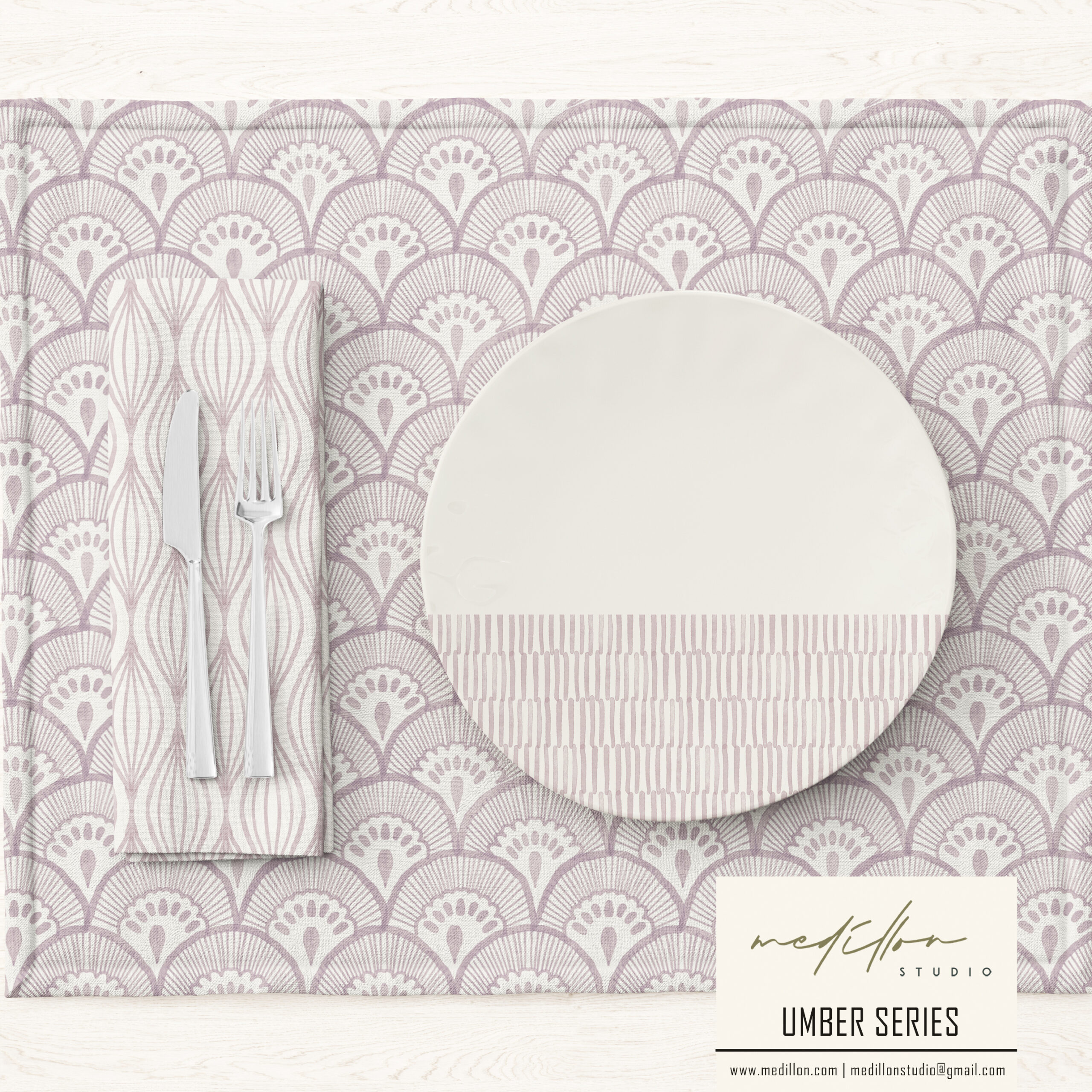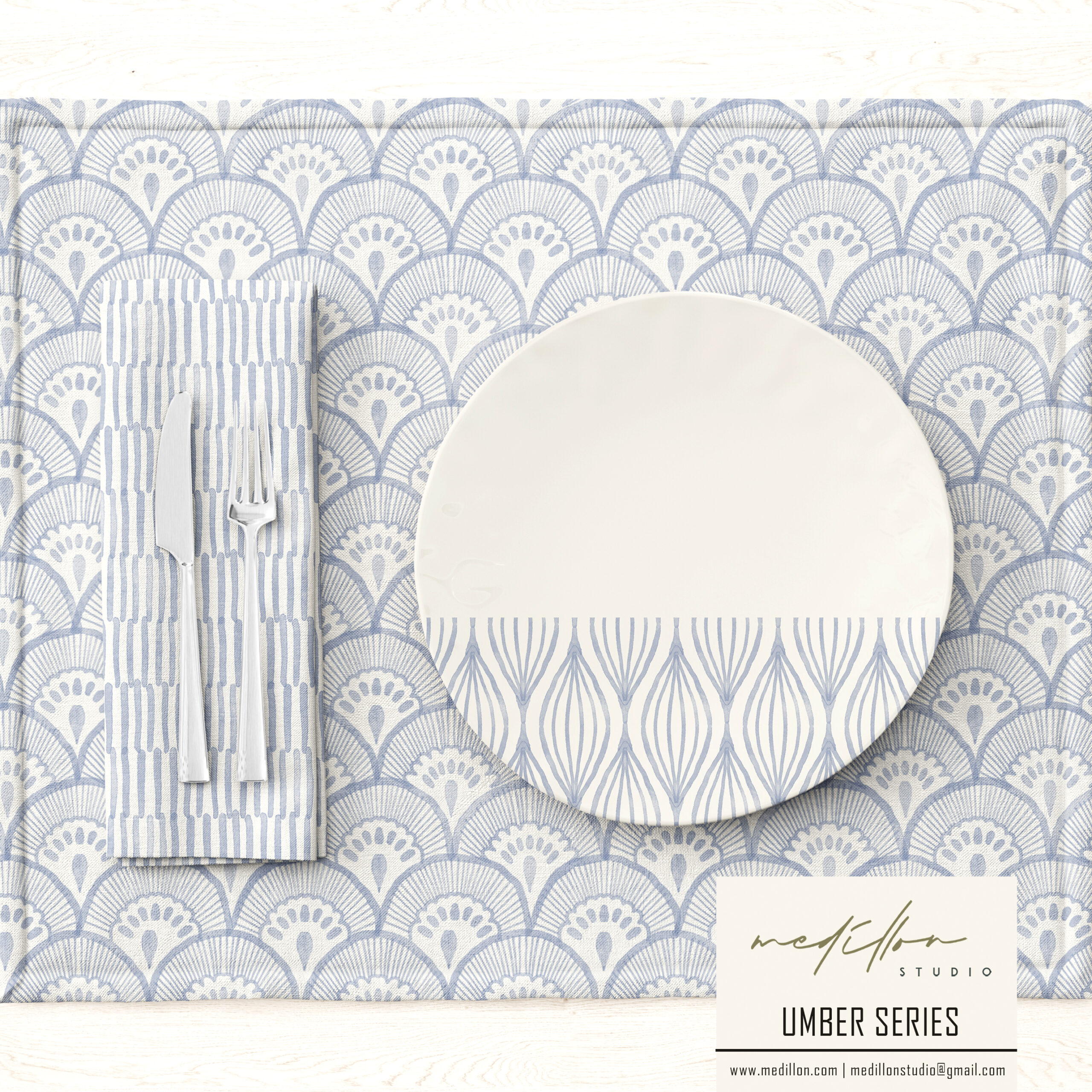 The Umber Collection is a celebration of natural artistry, inspired by traditional block printing and the earthy allure of natural pigment dyes, all brought to life through delicate watercolor. Each pattern reflects the rich depth of umber tones, evoking warmth, timeless beauty, and an embrace of harmony and balance found in imperfections. Influenced by the craft of hand-blocked textiles, these designs combine organic watercolor strokes with subtle textures, capturing the unique, uneven beauty that only hand-applied pigments and traditional techniques can offer.
